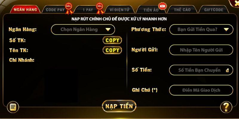 - Khi thực hiện quá trình nạp tiền vào game thì bắt buộc tên người gửi và tên tài khoản phải khớp nhau.